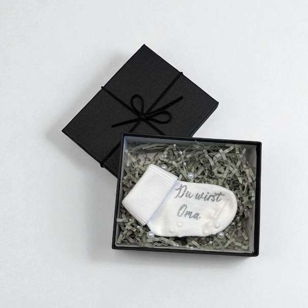 Babysöckchen mit besonderer Botschaft – die liebevollste Art, die schönste Nachricht überhaupt zu überbringen: Du wirst Oma.