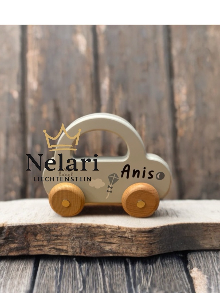 Dieses zauberhafte Holzauto in zartem Blau wird mit deinem Wunschnamen personalisiert und ist damit ein echtes Unikat.